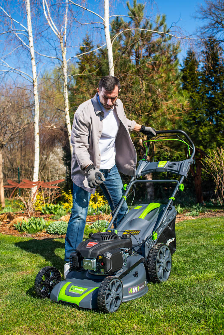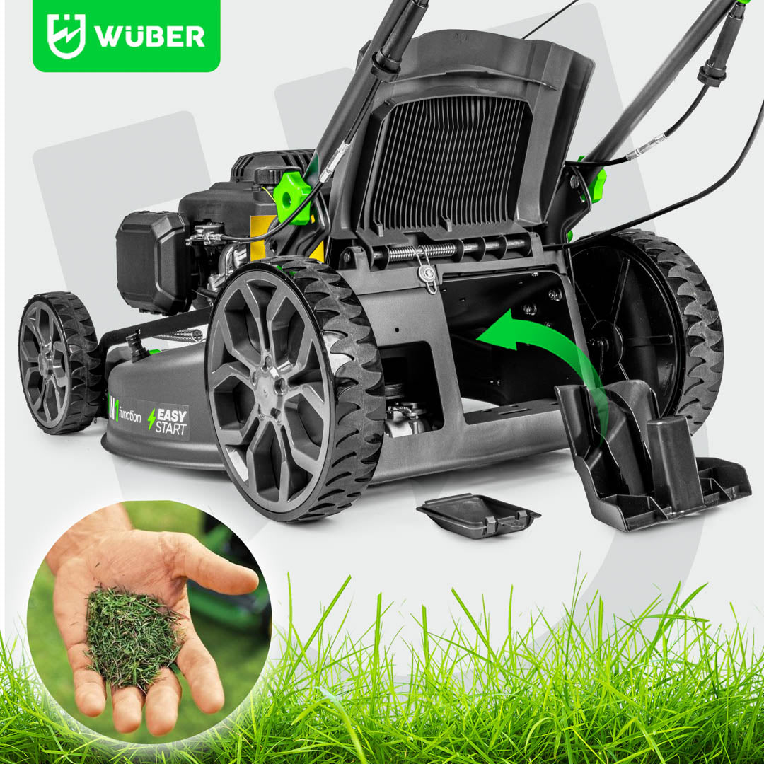 Dzięki temu skoszona trawa działa jak naturalny nawóz, wzbogaca glebę w składniki odżywcze, pomaga utrzymać wilgotność i ogranicza potrzebę stosowania chemicznych środków. Dodatkowy wyrzut boczny i tylny pozwala na pełną kontrolę nad skoszoną trawą.