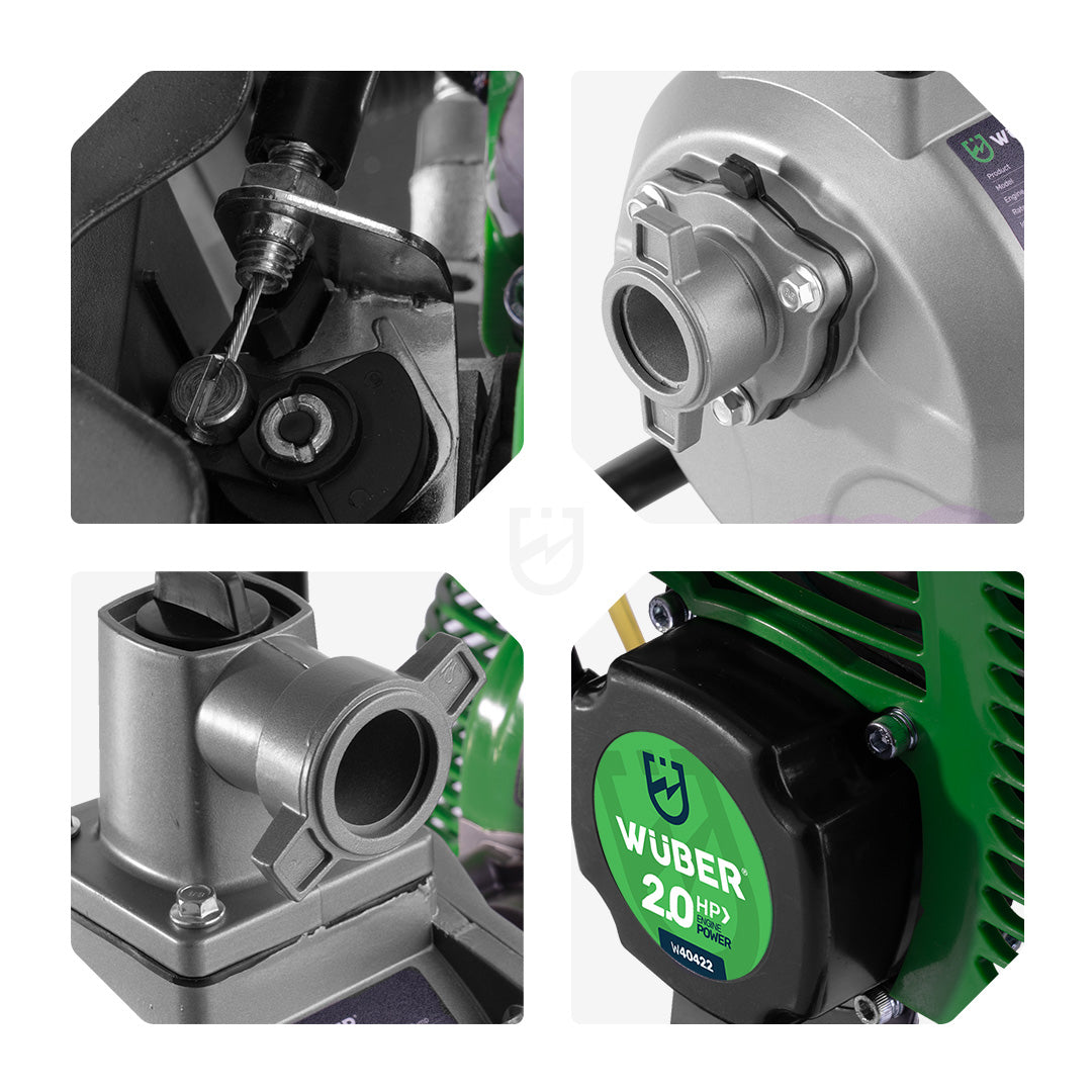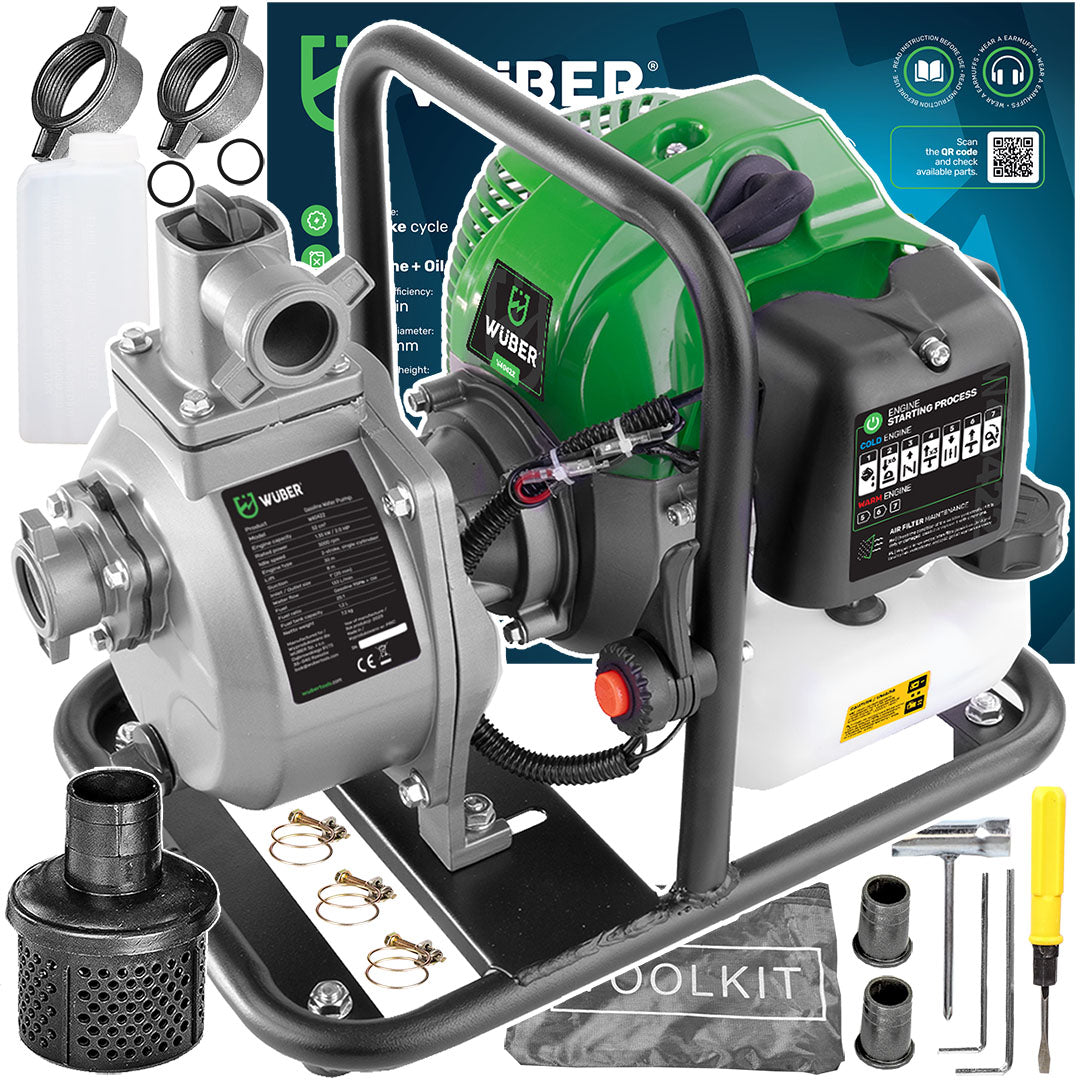 Motopompa wyposażona jest w solidną żeliwną turbinę oraz stalowy wirnik łopatkowy, zapewniające wyjątkową trwałość i odporność na uszkodzenia.