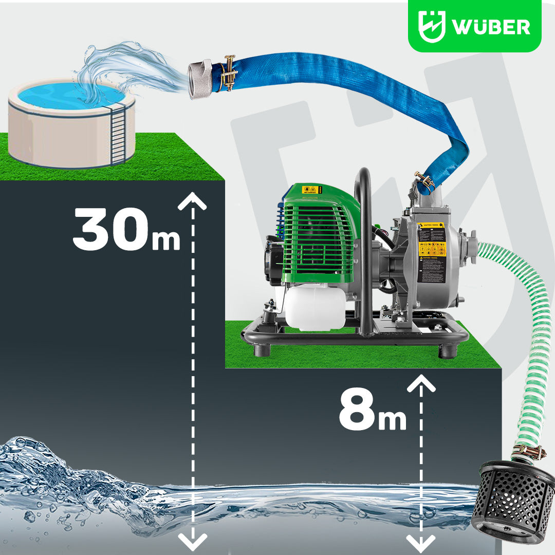 Wydajność 600 l/min, wysokość podnoszenia 30 m i zasysania 8 m gwarantują sprawne przepompowywanie wody.