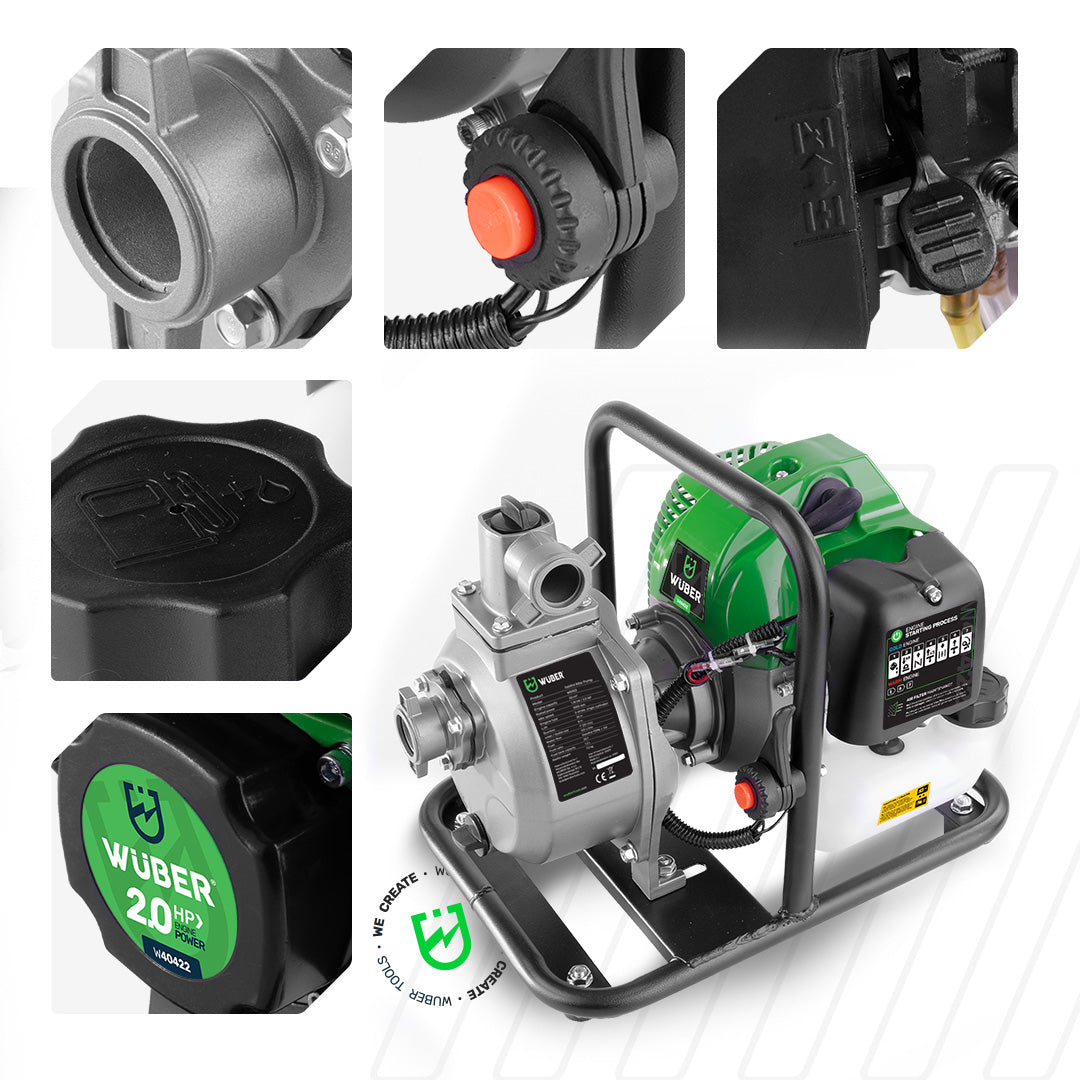 Motopompa napędzana jest 4-suwowym silnikiem OHV o pojemności 196 cm³ i mocy 7 KM.