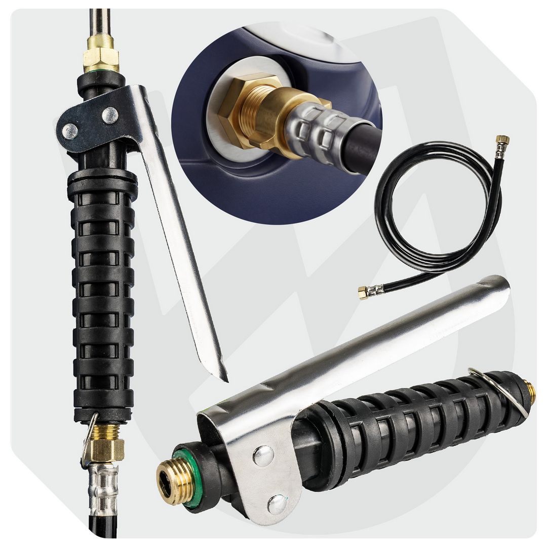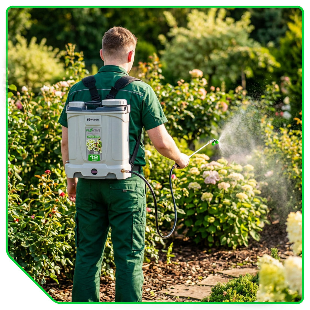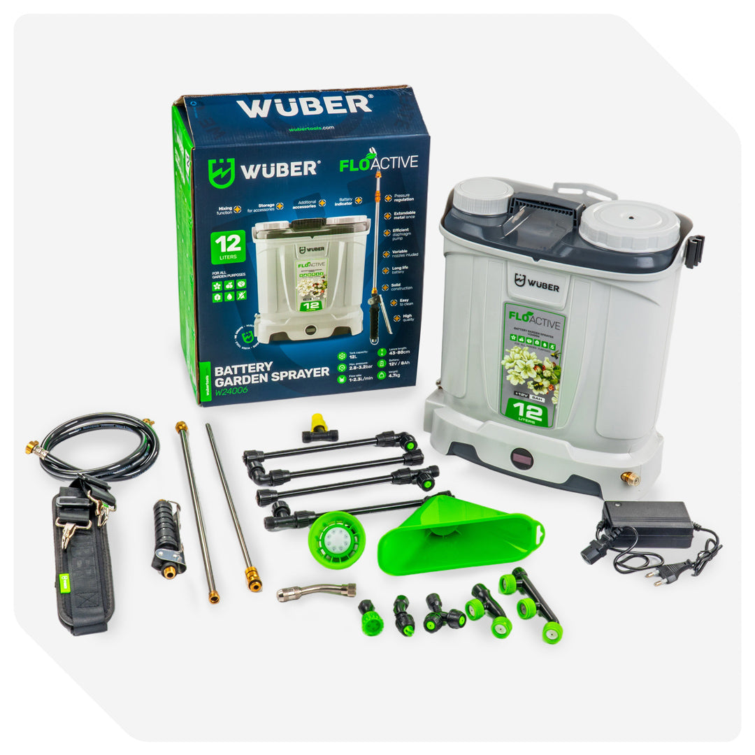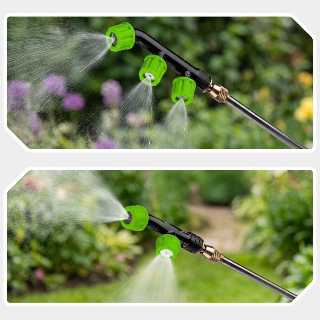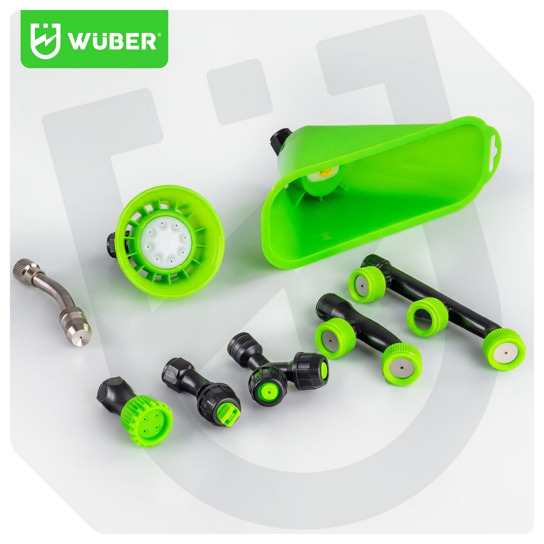Bogaty zestaw dysz pozwala dopasować oprysk do każdego zadania - od dużych powierzchni po precyzyjne zabiegi punktowe.