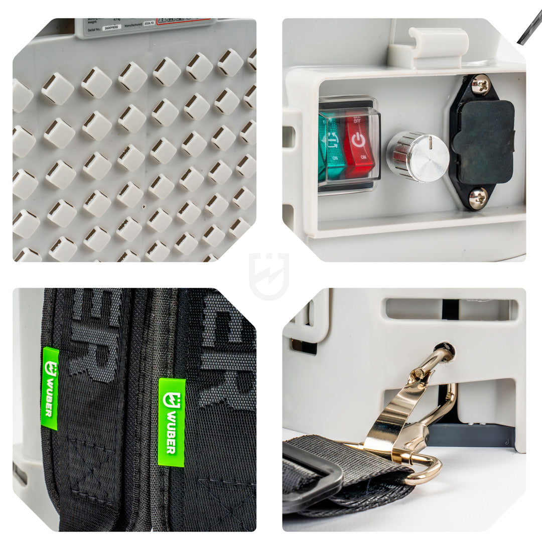 Wzmocniony zbiornik o pojemności 12 litrów pozwala na długą pracę bez częstego uzupełniania, a jego trwała, dwuwarstwowa konstrukcja z polietylenu gwarantuje odporność na uszkodzenia i warunki zewnętrzne.