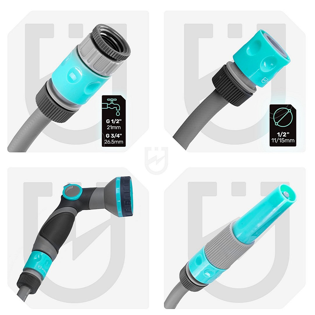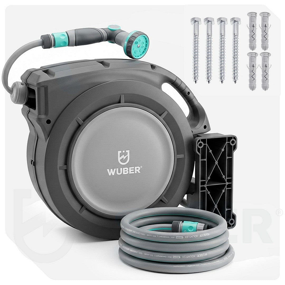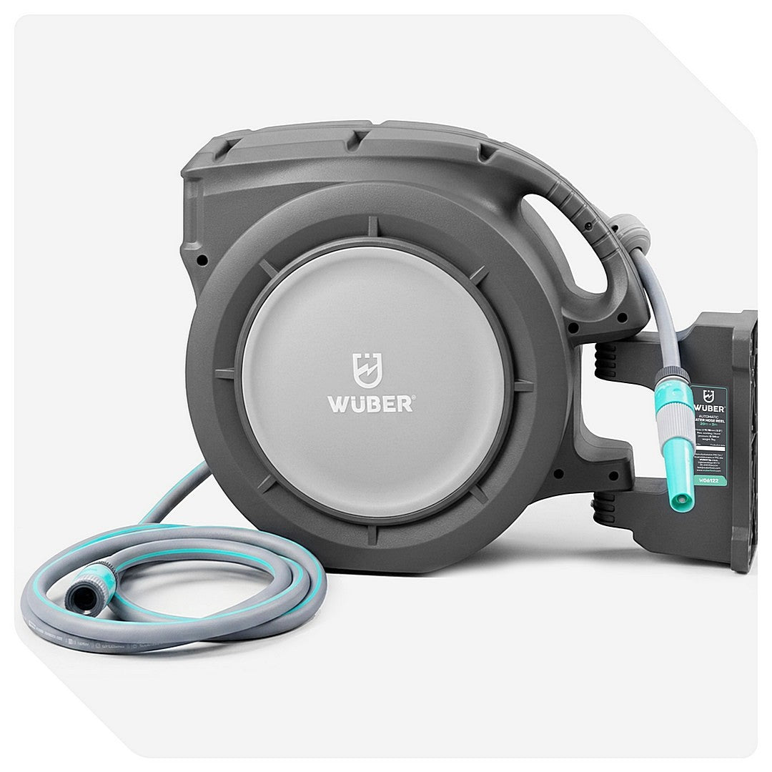 Mechanizm zwijania działa płynnie, ogranicza szarpnięcia i zwiększa bezpieczeństwo użytkowania. Stoper oraz blokada chronią przed gwałtownym cofnięciem węża, a możliwość zatrzymania na dowolnej długości zapewnia wygodę i pełną kontrolę podczas pracy.